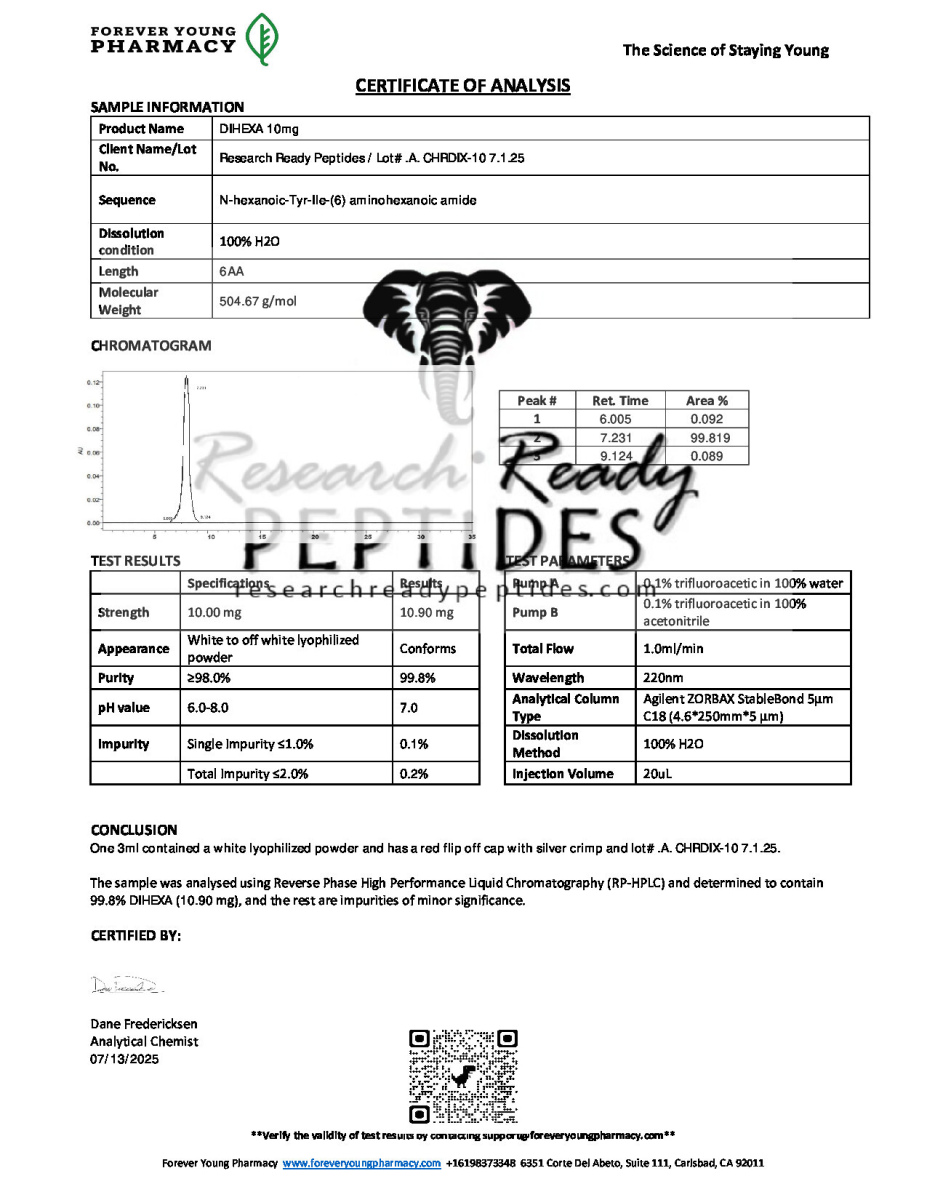 Dihexa 10mg (tested 11mg) Research Peptide
