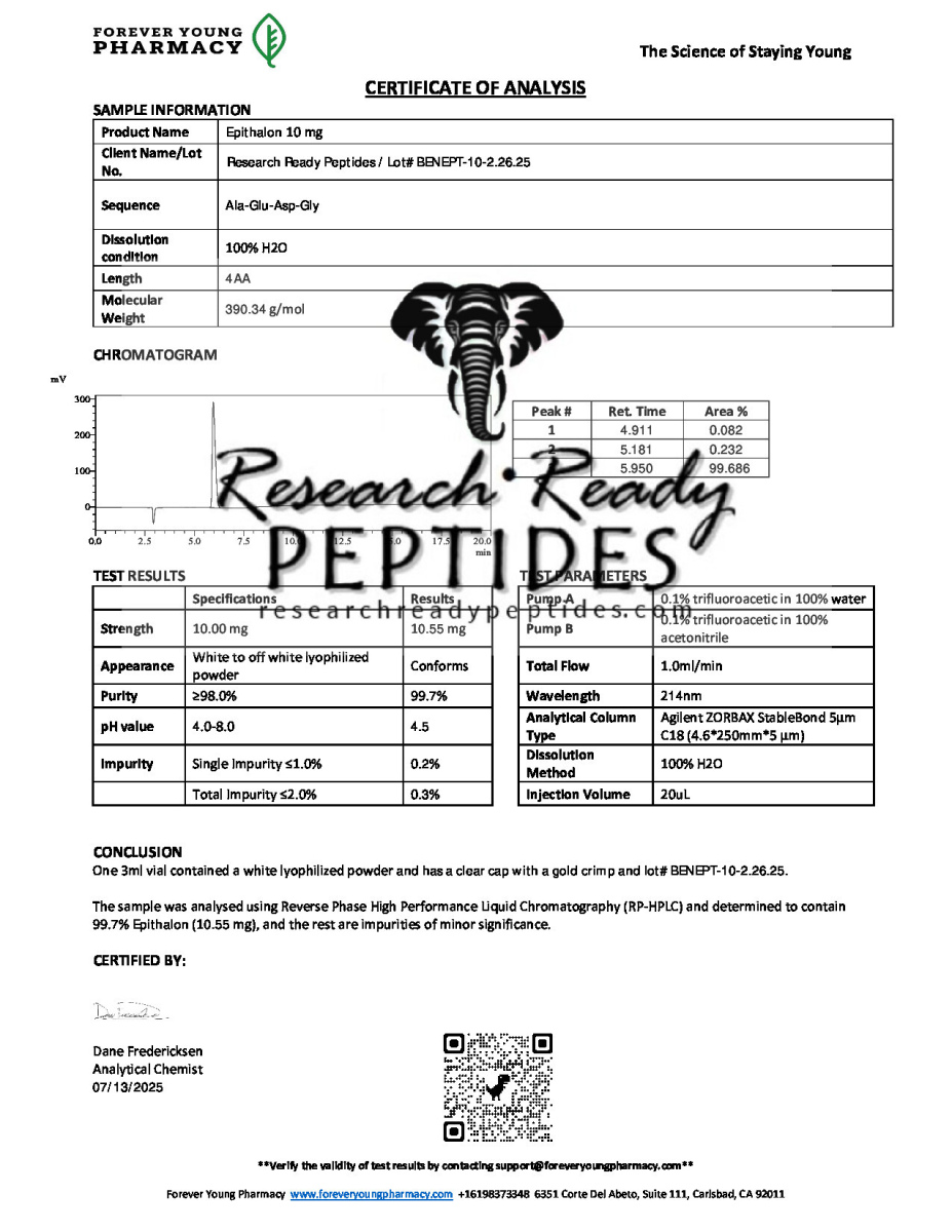 Epitalon 10mg Nootropic Khavenson Research Peptide